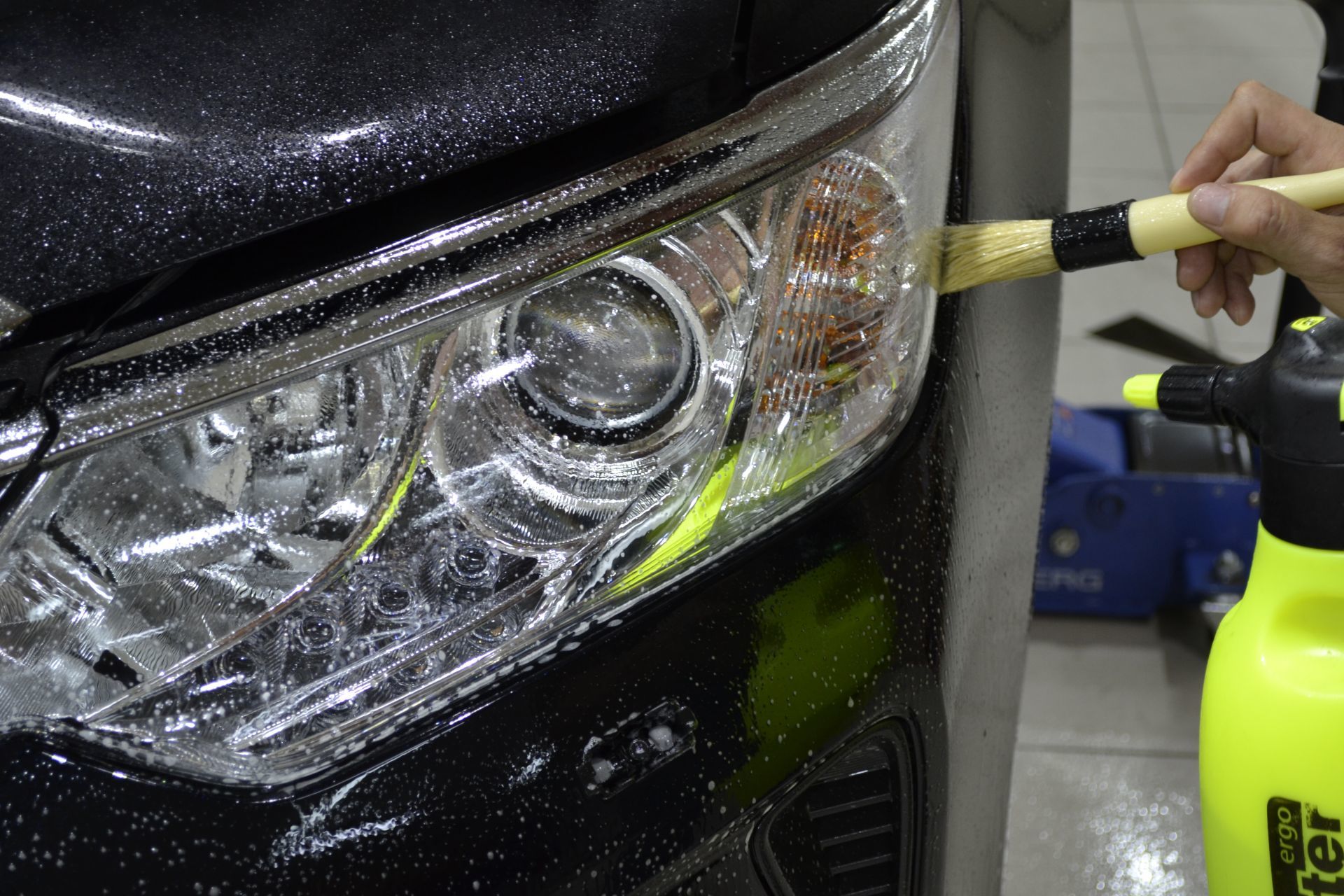 Моем авто, аккуратно снимаем весь конструктив (ручки дверей, фары и прочее), если он попадает в зону оклейки, т.к. концы пленки заводим под них.